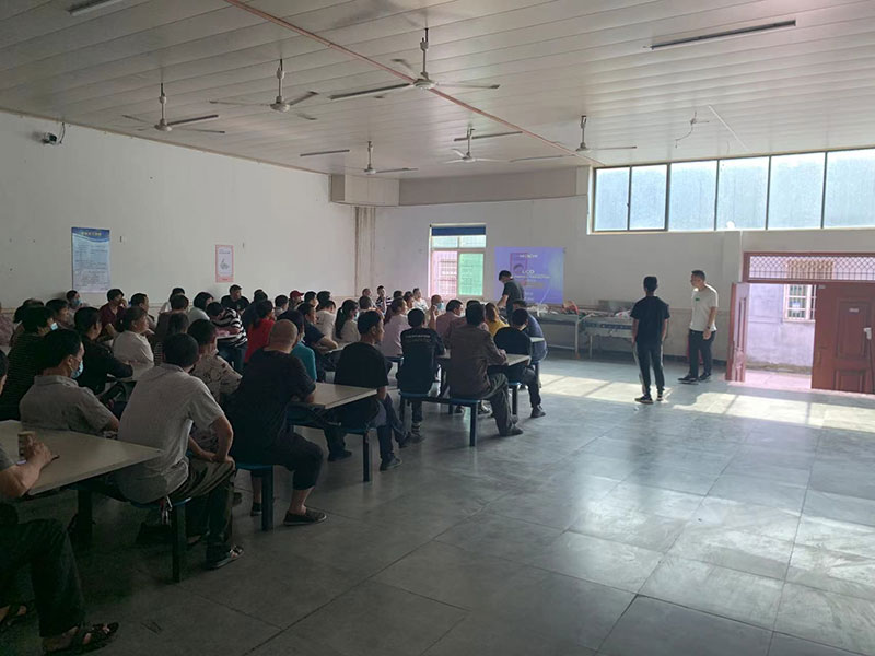 一、培訓授課在公司食堂舉行,講解了生產車間員工衣著規範和機器操作規範、各類滅火器的使用範圍和有效期限以及火險處理程序等。